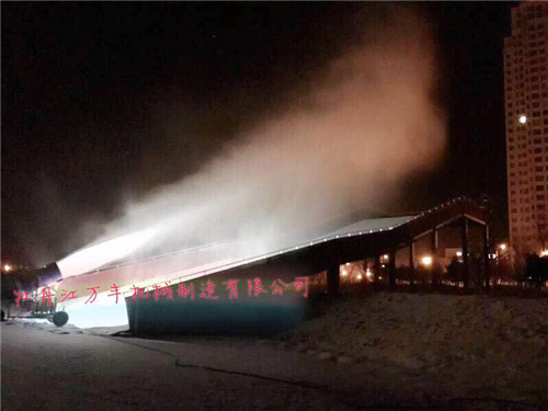 現代冬季人工造雪是及其重要的,我廠已有多年制造造雪機的經驗和技術,特別是今年在原基礎上,設計更加簡單,使用和維修更加方便,雪的質量好,造雪量大,為適應我國更廣大地區冬季造雪,我廠今年新推出子母噴嘴,就是在原來一個大噴嘴上安裝七個小噴嘴,使噴出的水霧更細小,冷凍的速度更快,為此這樣的結構更適應與我國廣大南部,冬季氣溫較高的地區造雪。